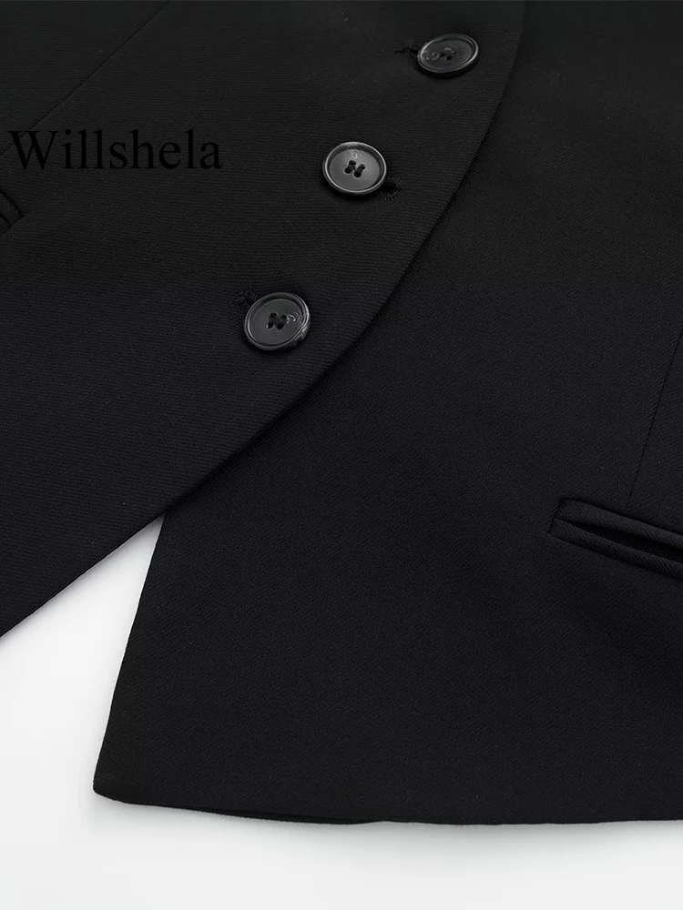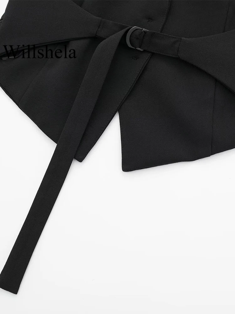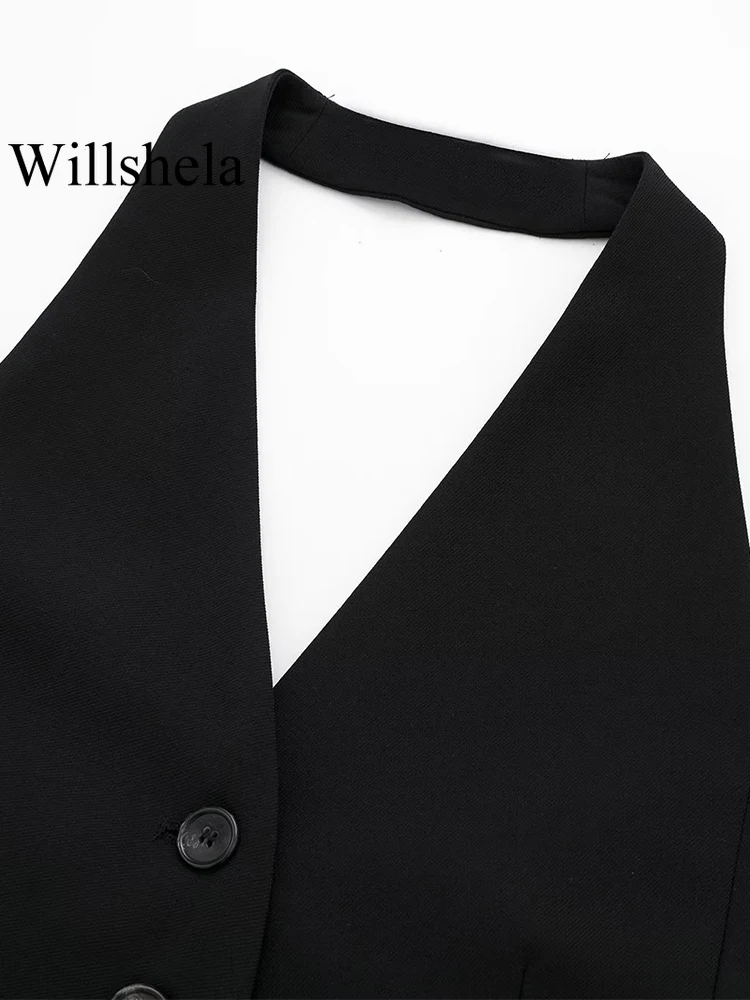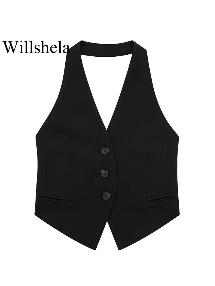 Willshela Women Fashion Black Backless Lace Up Waistcoats Vintage Halter Neck Sleeveless Jackets Female Chic Lady Tank Tops