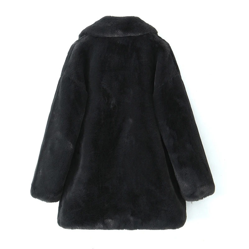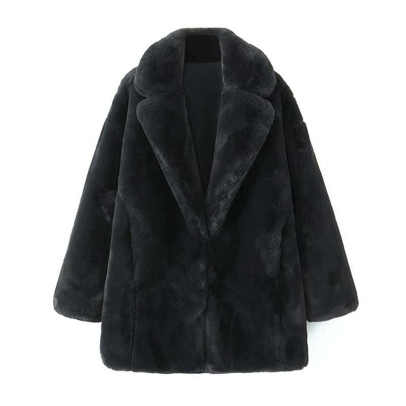 Willshela Women Fashion Black Faux Fur Hidden Breasted Coats Vintage Lapel Neck Long Sleeves Female Chic Lady Outfits