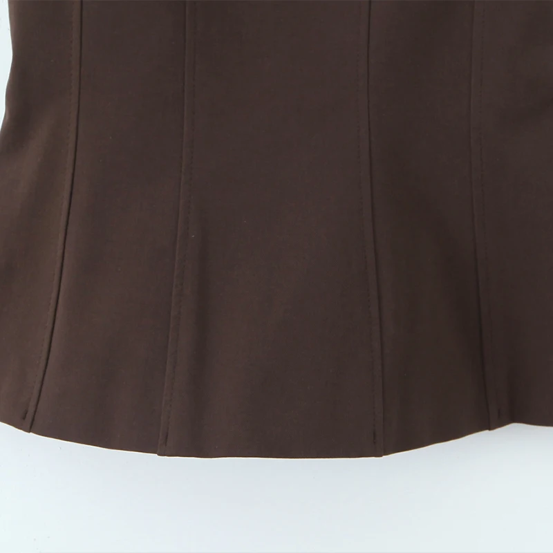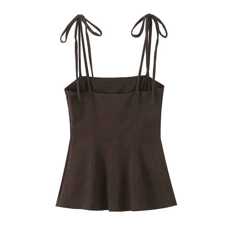 Willshela Women Fashion Brown Backless Bow Lace Up Side Zipper Camis Vintage Thin Straps Square Collar Female Chic Lady Tops