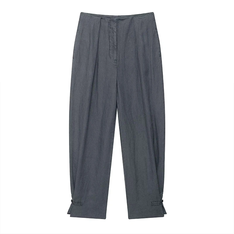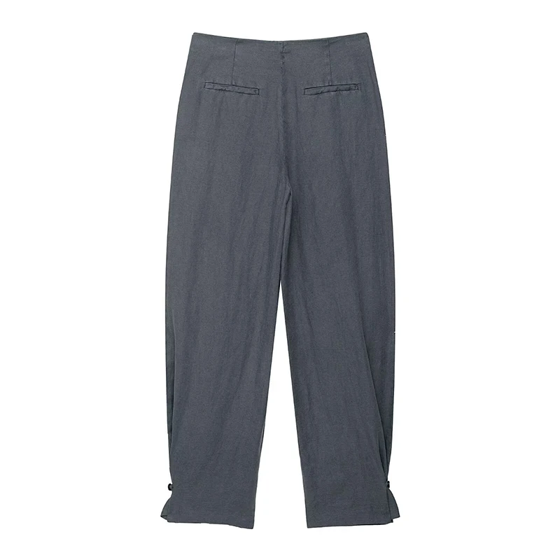 Willshela Women Fashion Grey Pleated Front Zipper Straight Pants Vintage High Waist Full Length Female Chic Lady Trousers