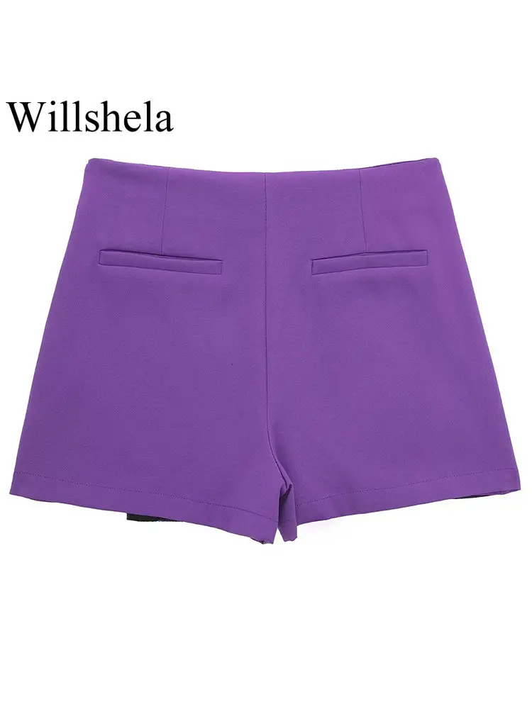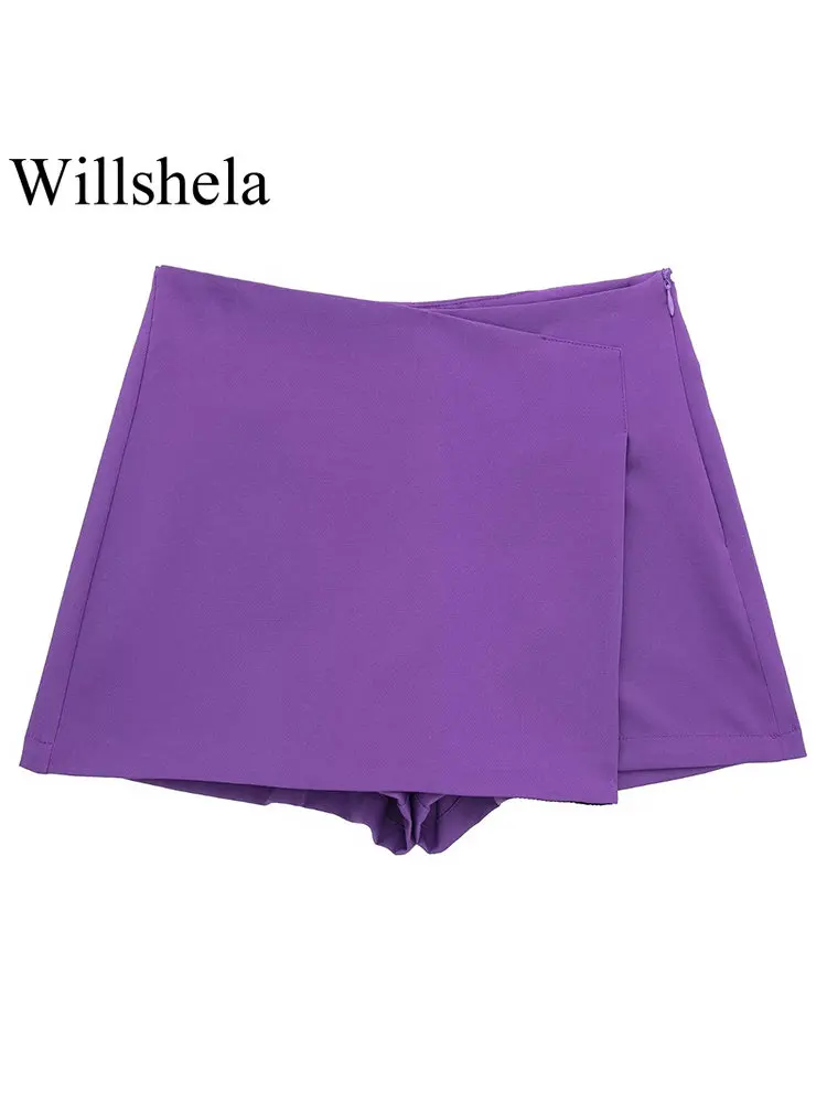 Willshela Women Fashion Solid Asymmetrical Side Zipper Skirts Shorts Vintage High Waist Female Chic Lady Shorts