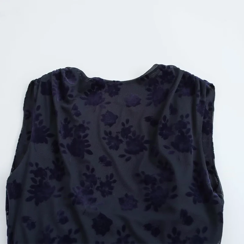 Willshela Women Fashion Tulle Printed Backless Bow Lace Up Tank Tops Vintage O-Neck Sleeveless Female Chic Lady Top
