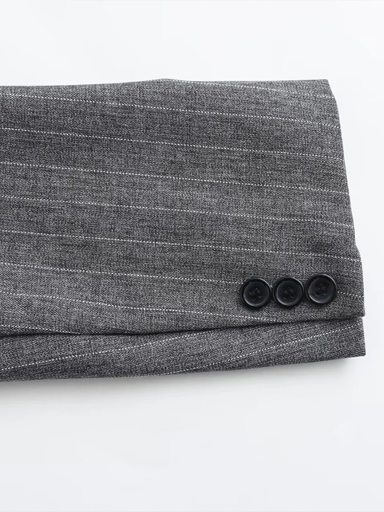 Willshela Women Fashion With Pockets Striped Single Breasted Blazer Vintage Notched Neck Long Sleeves Female Chic Lady Outfits